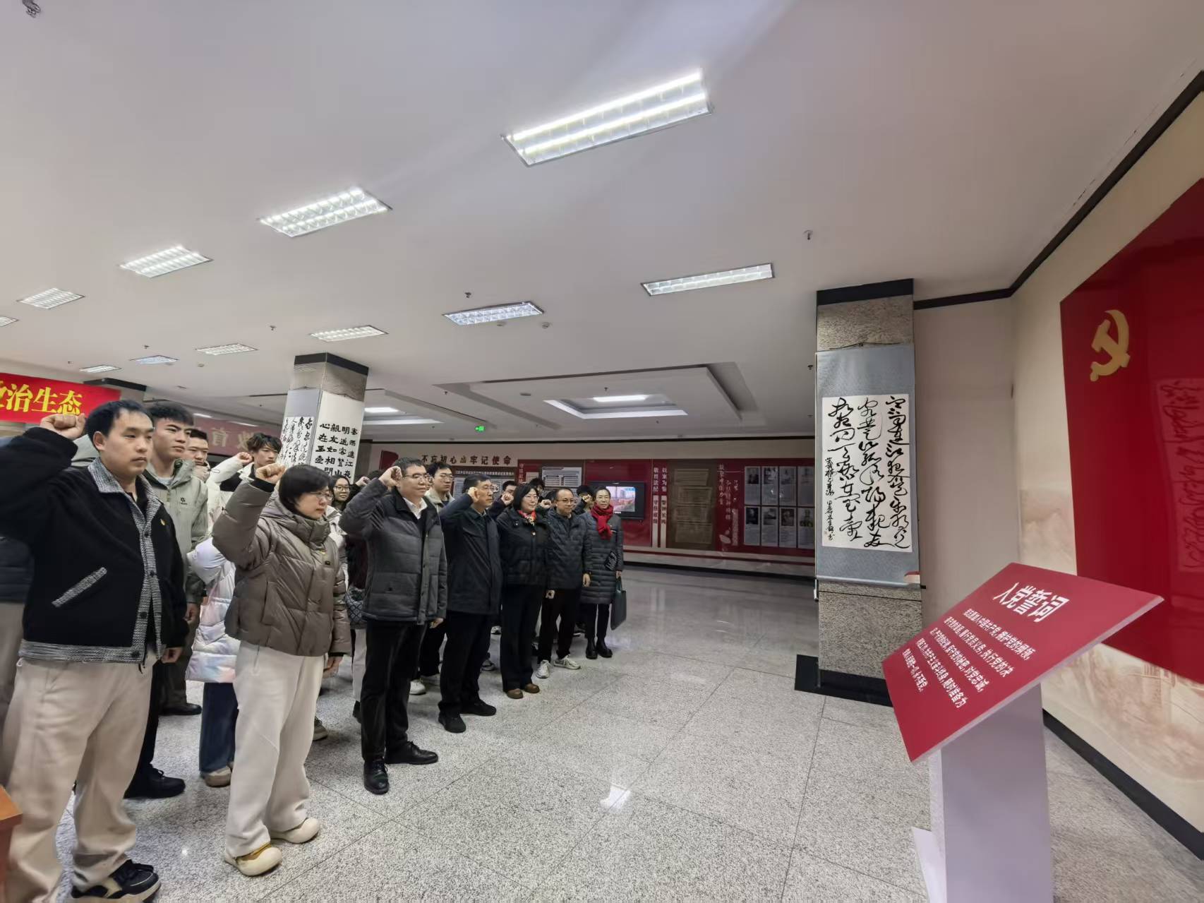 参观环节结束后,院党委书记刘思周带领全体党员面向鲜红的中国共产党党旗,举起右拳、庄严宣誓。 铿锵有力的誓言回荡在教育中心,不仅是对入党初心的深刻回望,更是对廉洁自律承诺的郑重重申,让每一位党员再次接受思想洗礼,坚定了坚守廉洁底线、践行使命担当的信念。